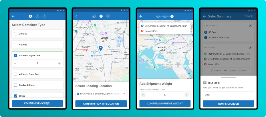 Order Detail Card: Mobile cards display essential details, order ID, locations, and assigned vehicles, prioritizing clarity and at-a-glance access.
